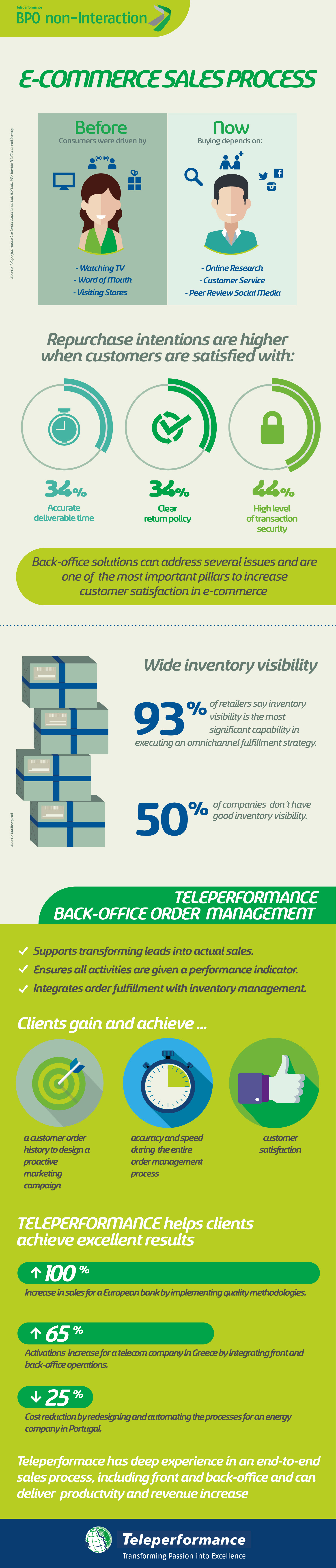Infographic made for Teleperformance about the steps of a good E-commerce sales process